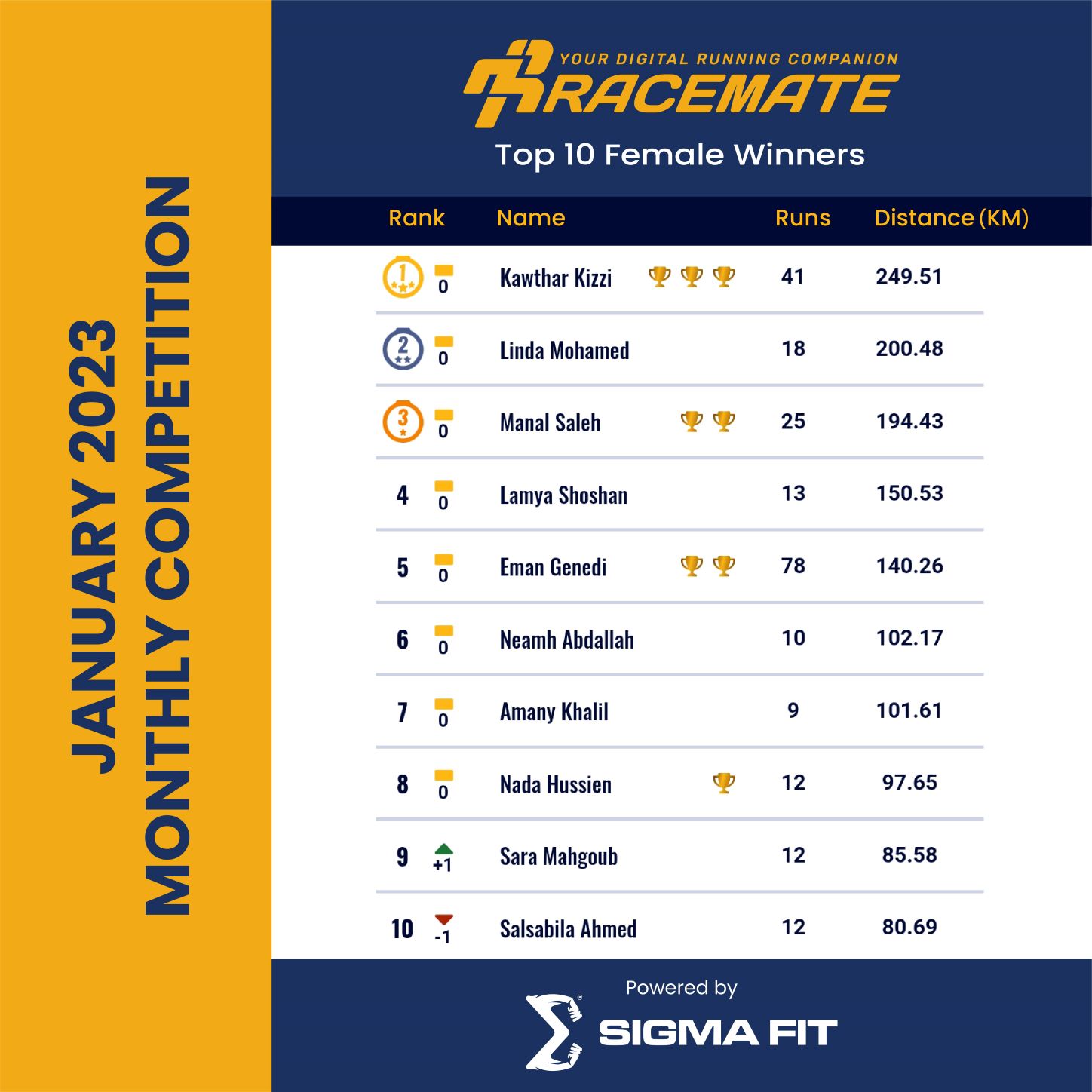 - سيكون لدينا قوائم متصدرين منفصلة للعداءين والعداءات سيتم نشرها يوميا.